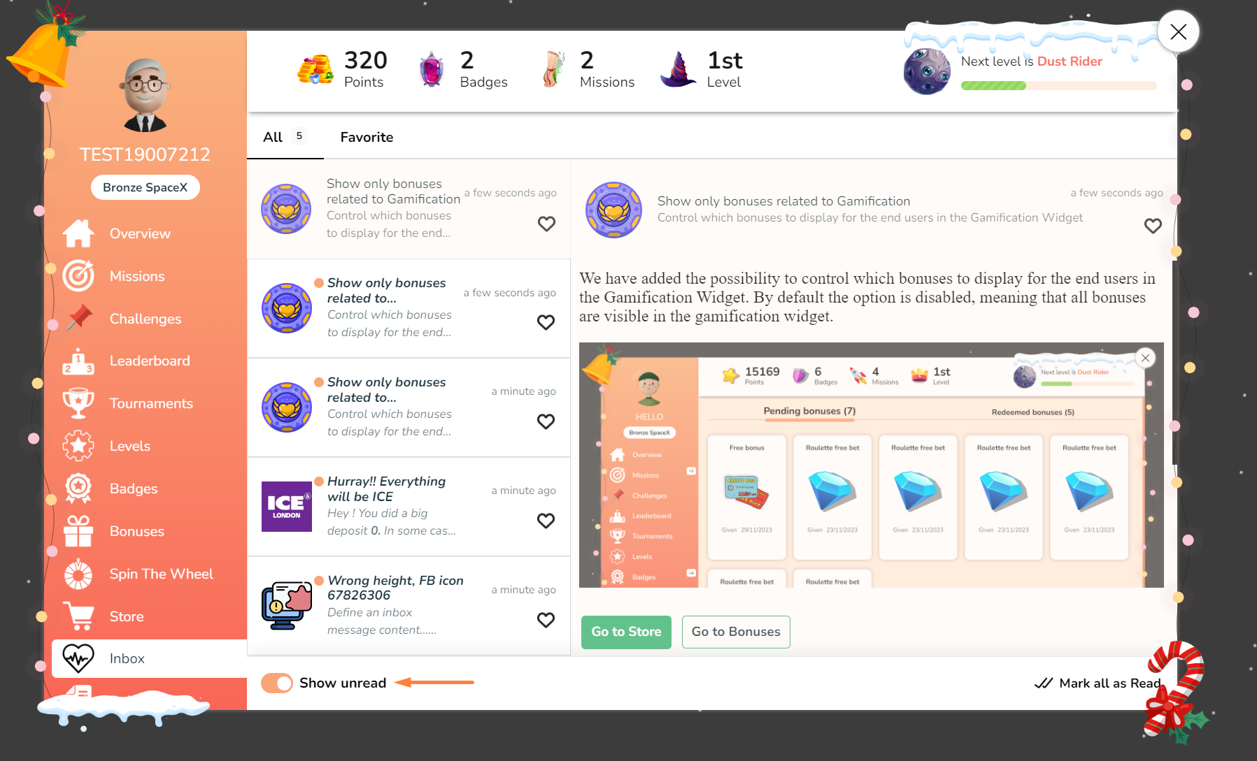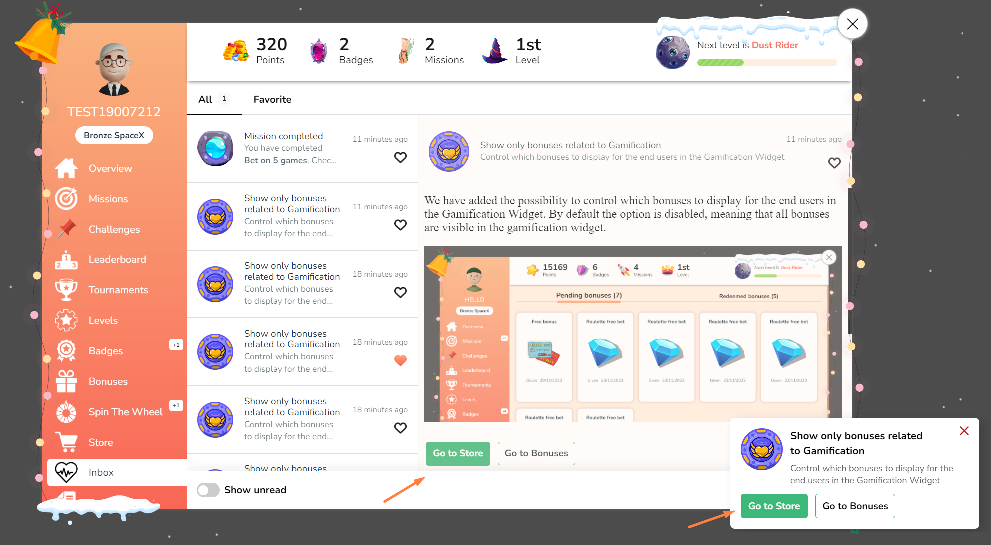 You can now control which bonuses to display for the end users in the Gamification Widget. We have added the possibility to: