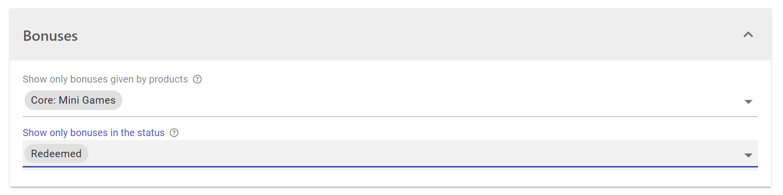 * show only bonuses with particular status (Redeemed, Redeem Failed, etc.)