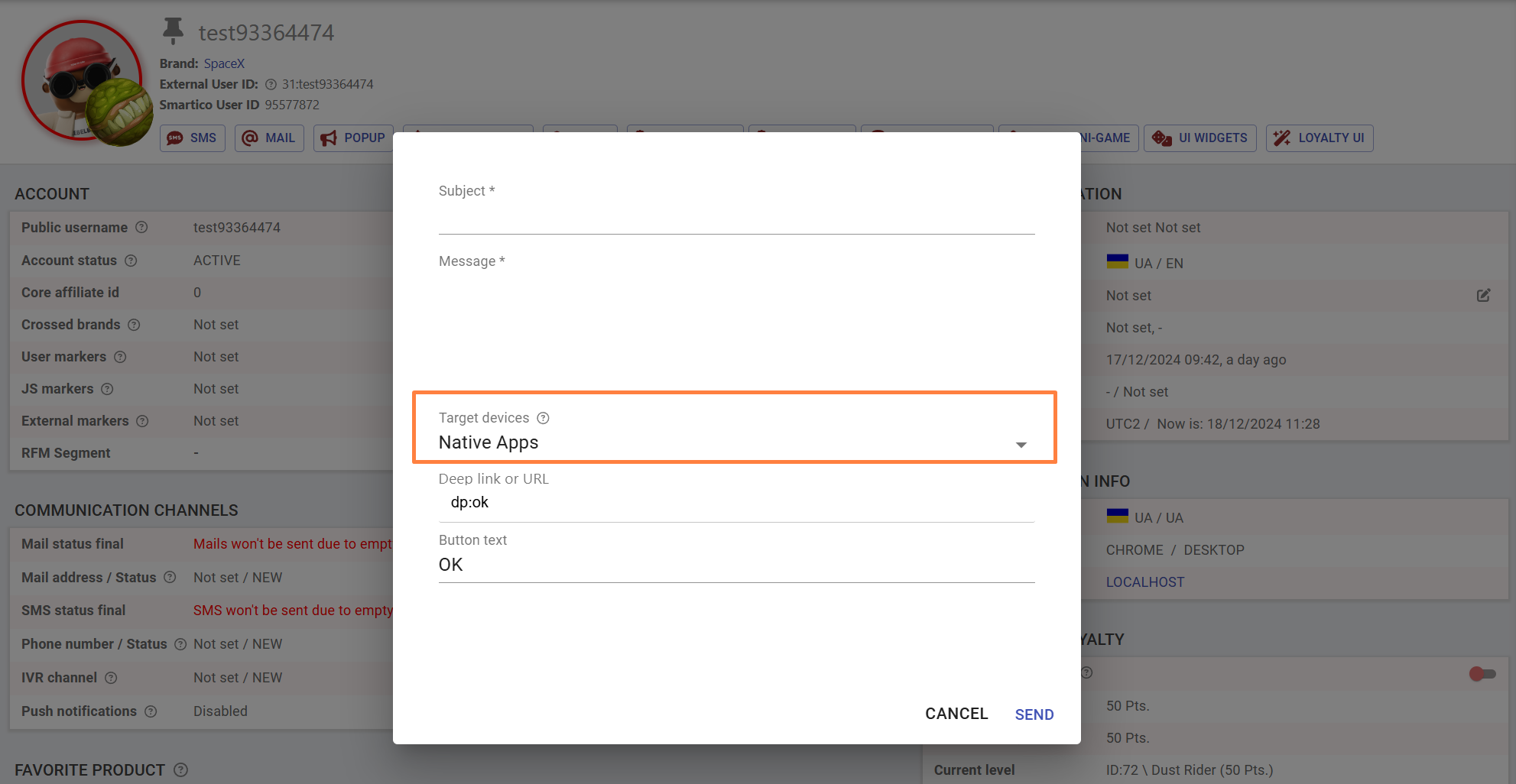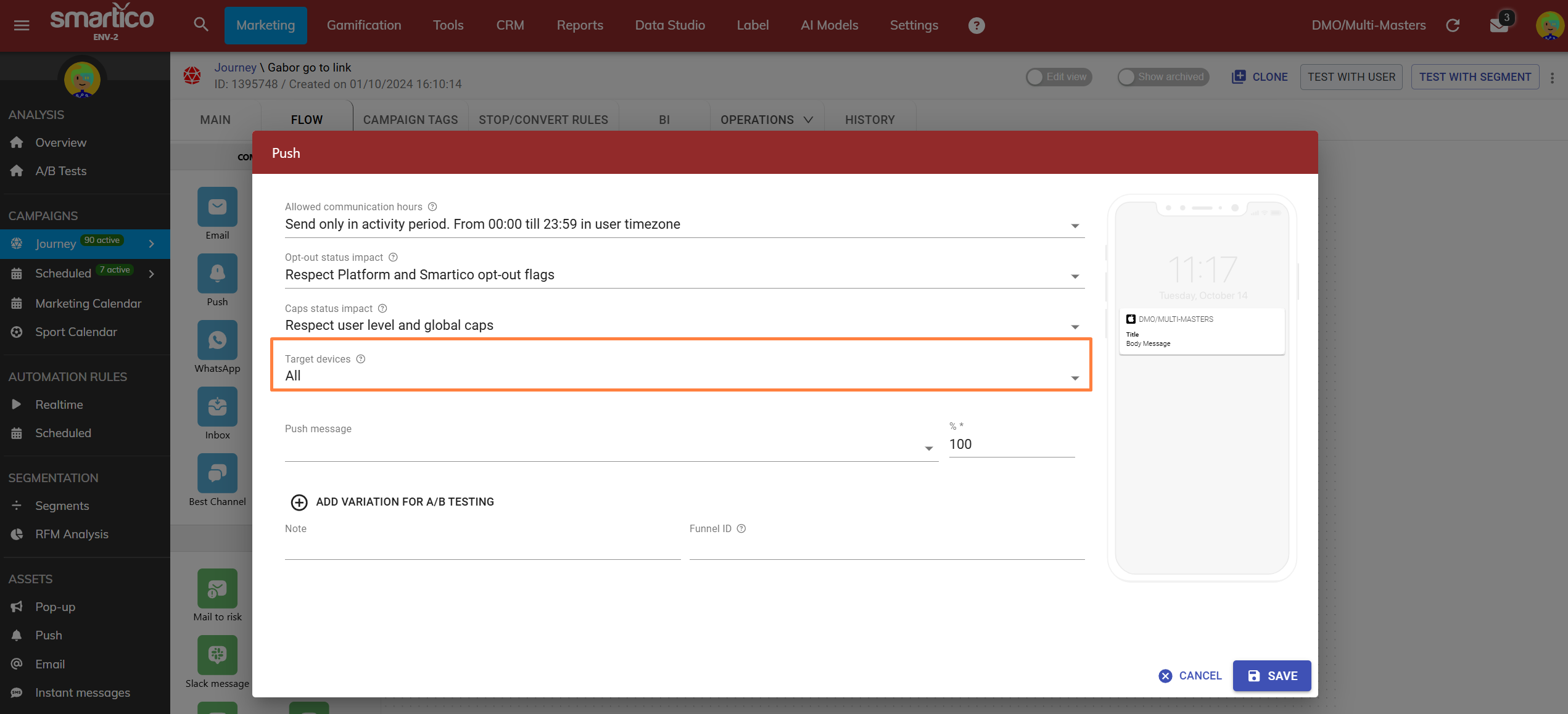 We’ve added a new option for sending push notifications called the 'Target devices'. This setting allows you to choose the type of app to receive the notifications: