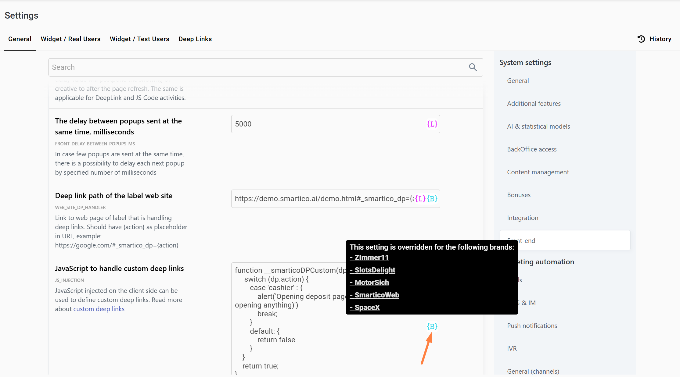 * **Change Tracking:** You can track changes made to settings, including overrides at the Brand or Label level.
