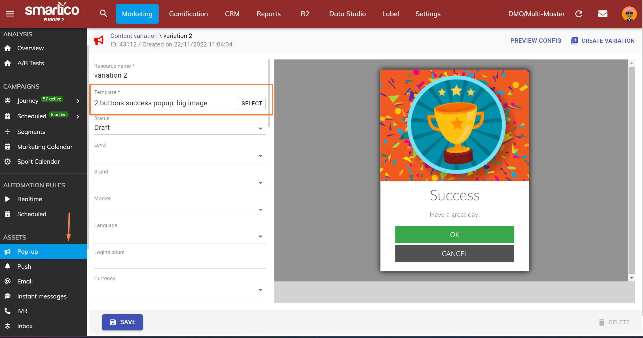 We’ve added pop-up templates in the content variations for Pop-up assets. So now labels with multiple brands can send a popup, where each brand has a very different popup design.