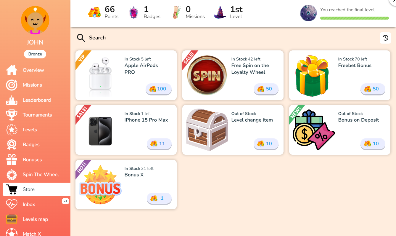 <figure><img src="https://77049817-files.gitbook.io/~/files/v0/b/gitbook-x-prod.appspot.com/o/spaces%2FfS5hl0PiysHtKAKMsQTe%2Fuploads%2Fgit-blob-742bb4094a2ec994c2dd13062ffea4c65cc317cc%2FScreenshot_28.png?alt=media" alt=""><figcaption><p>Revamped Store in the Gamification Widget</p></figcaption></figure>