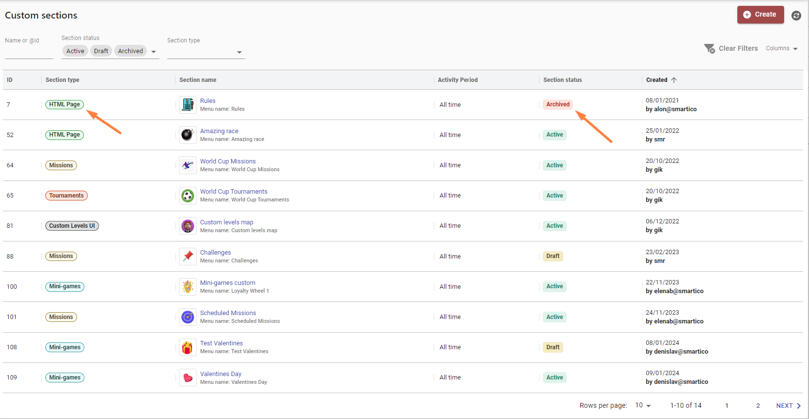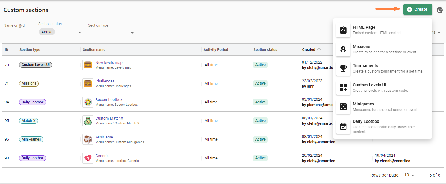* Enhanced creation process for sections supporting multiple template types like Scheduled Automation rules, Custom Sections, Mini-games skins, Label Tags, Bonus Templates.