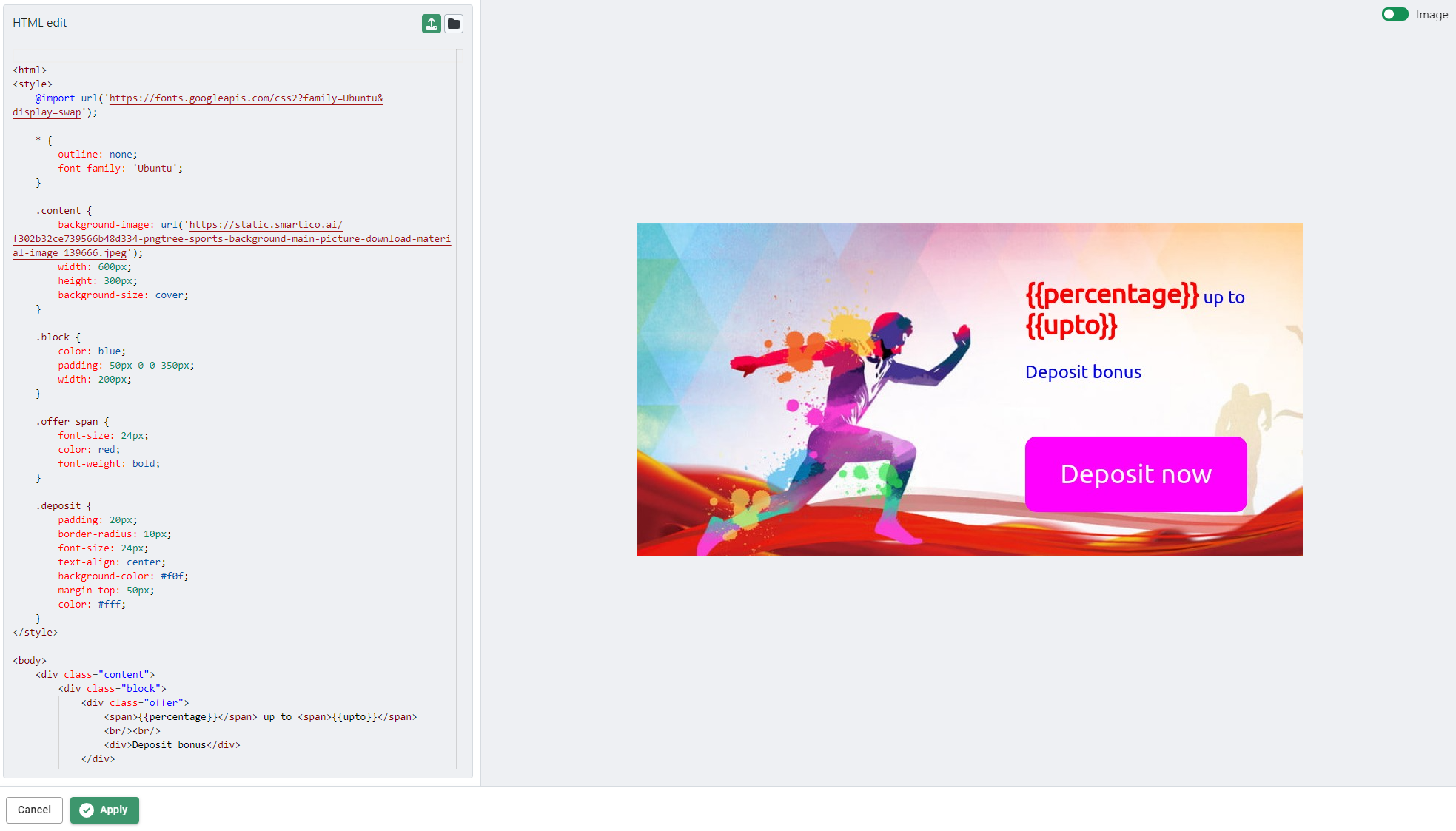 <figure><img src="https://77049817-files.gitbook.io/~/files/v0/b/gitbook-x-prod.appspot.com/o/spaces%2FfS5hl0PiysHtKAKMsQTe%2Fuploads%2Fgit-blob-d92ce648e3a38fce5a82a2e57b5942ebb218d290%2FScreenshot_4.png?alt=media" alt=""><figcaption><p>Fullscreen HTML editor in Image Compositions</p></figcaption></figure>