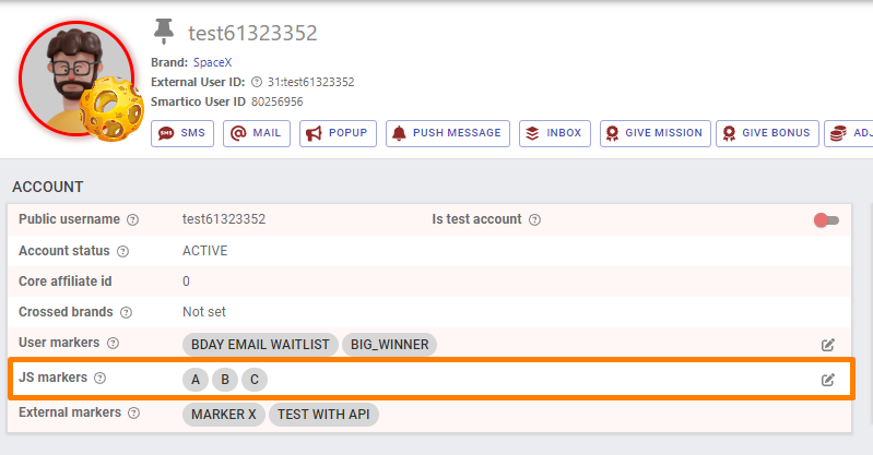 We've enhanced the Account section in the User Profile page within the BO by adding JS markers. Operators can now **view**, **add**, and **delete** JS markers for each player directly from their profile in the Back Office.