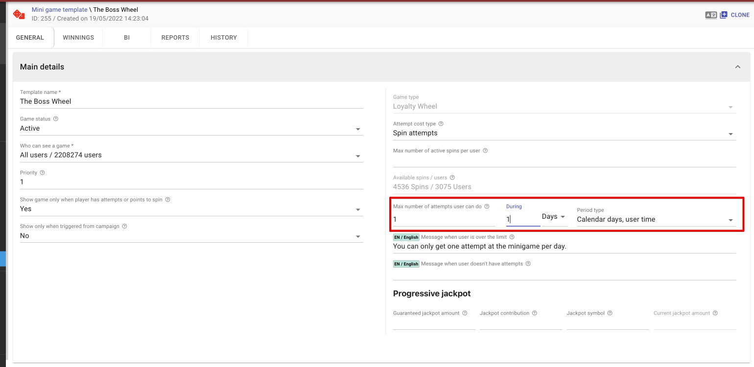 ### Mini-games - "Period type" for the number of spins attempts restriction
