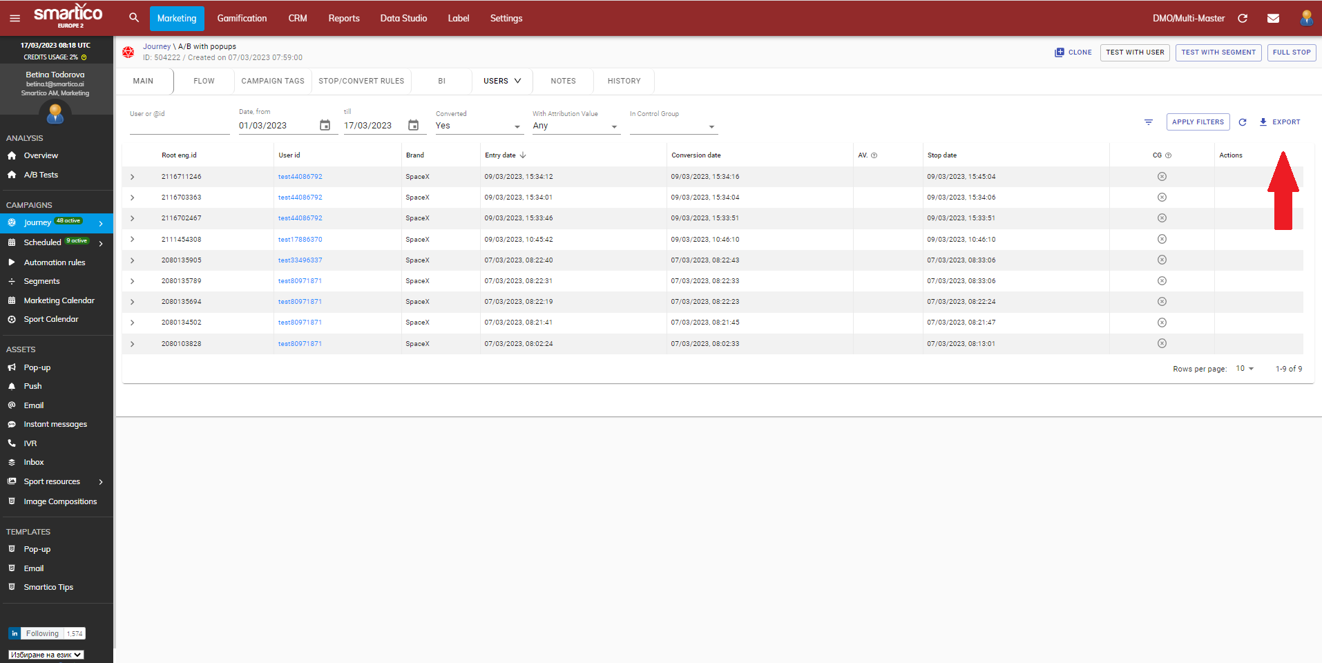 You can now download the list of your converted user from a given campaign. Simply filter the list out from the Operations tab and download it using the upper right corner button: