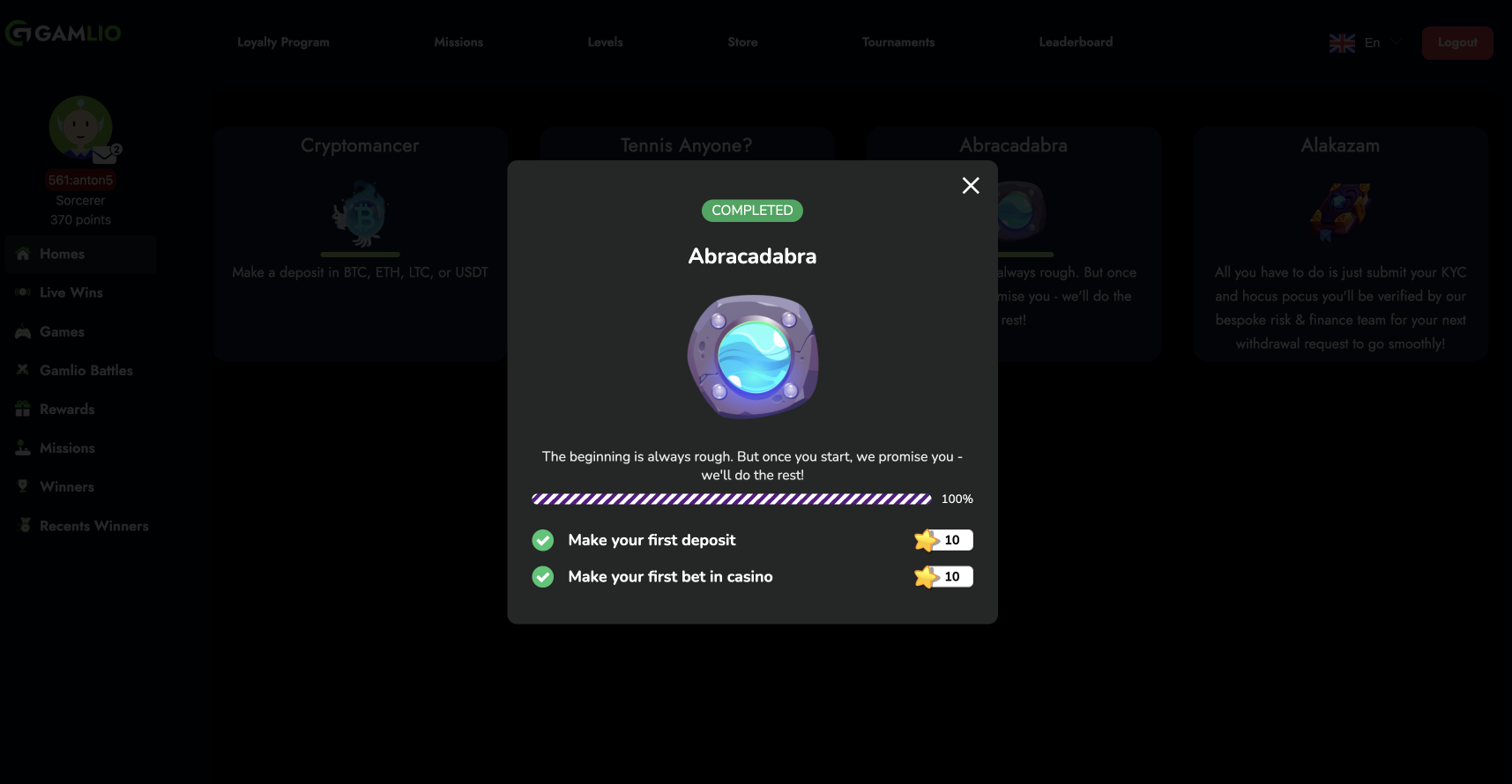 By adding "\&standalone=true" to the deep link, users will be directed to a dedicated section of the gamification widget without the left menu and header. This parameter is particularly useful when you want to provide users with a seamless experience that is focused solely on the content of a specific screen. For example, adding "dp:gf\_missions\&standalone=true" to the deep link will open the missions screen without the left menu and header.