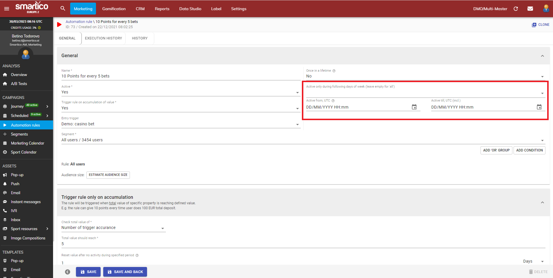 We added the feature for planning in advance when your automation rule to be active. You can mark the from - to dates in the following fields. Please note that the time is always in UTC time zone so make sure you plan accordingly.