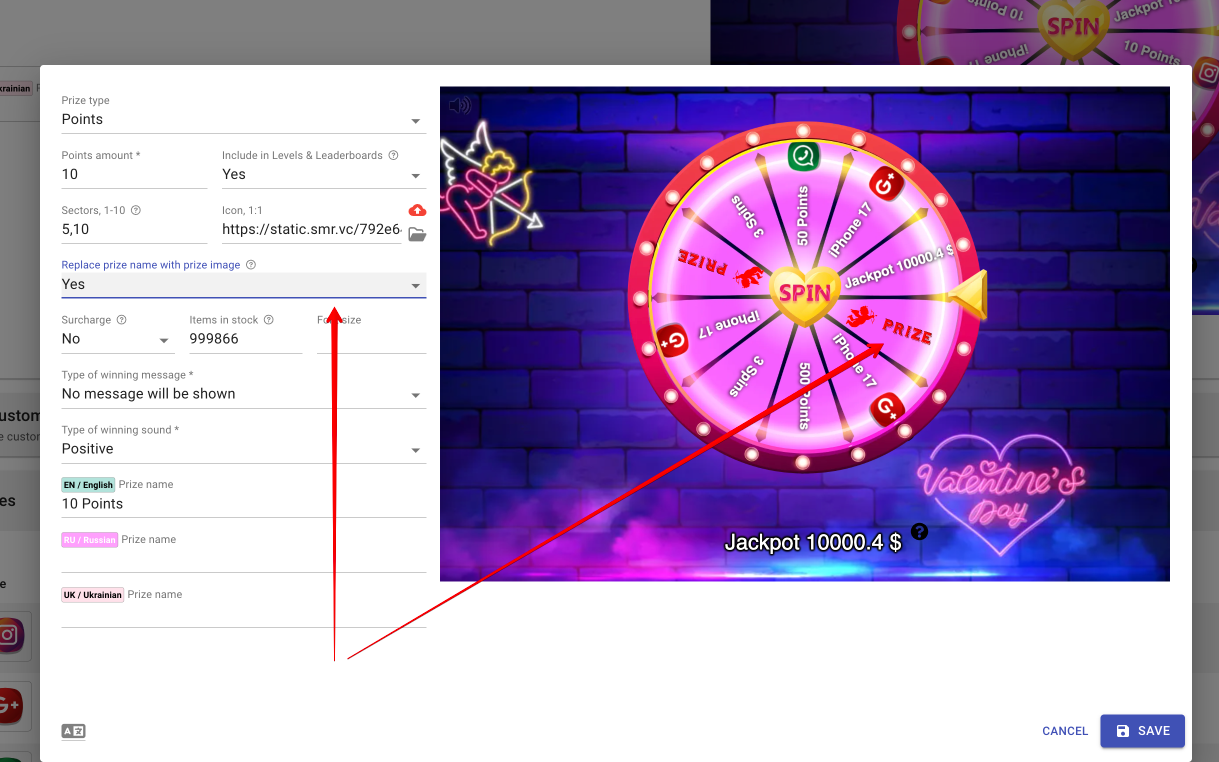 With this release we are improving our "Mini-games" functionality with two new configuration options for our spinning wheel feature: "Max number of attempts user can do" and "Period type". These options allow you to control the number of attempts users can make within a specific period of time, and define the error message they will receive if they exceed this limit.