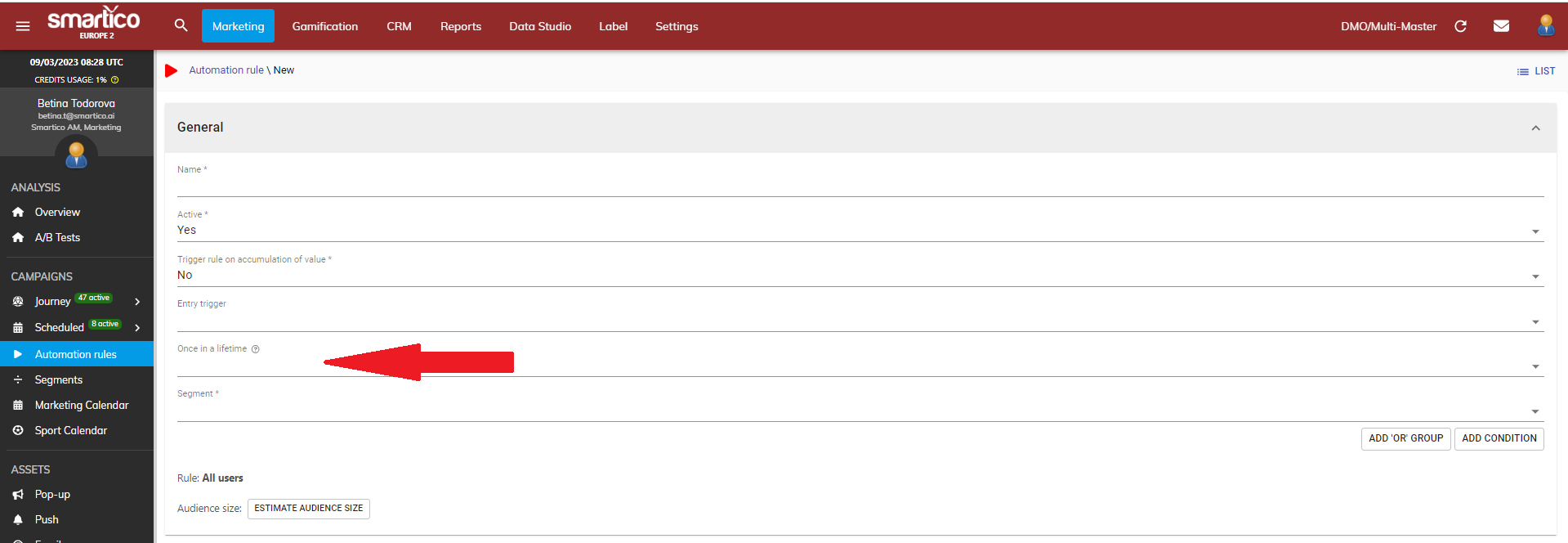 You now have the option to choose the entry mode to the automation rules. You can decide whether the users to enter just once in their lifetime to the given rule or be able to re-enter it. The setting can be found here:
