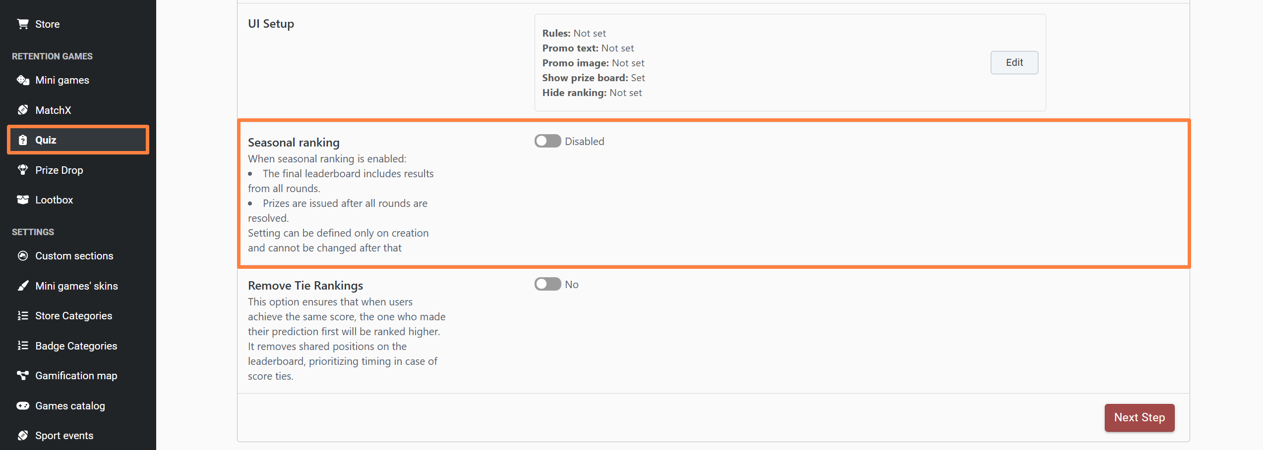 You can now choose between Seasonal or Round-Based ranking when setting up a Quiz. The ‘Seasonal Ranking’ option is now editable during creation, giving you full control over how rankings and prizes are structured.