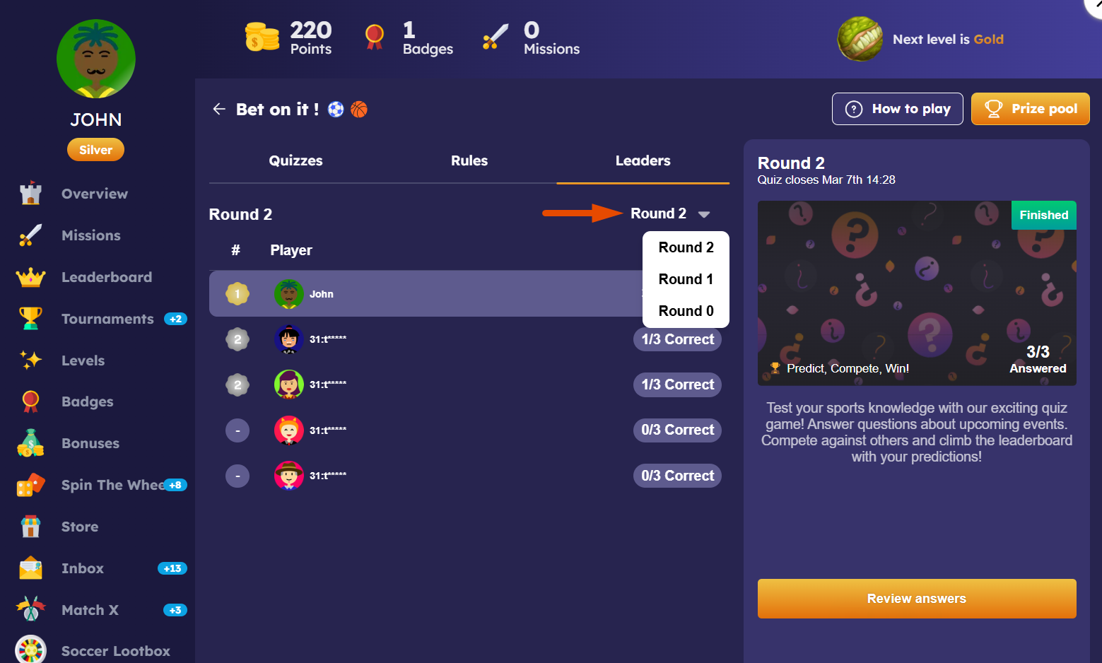 ### Gamification: Round-Based Ranking in Quiz