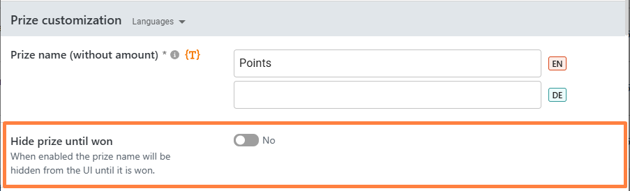* **When enabled:** The prize name remains hidden during gameplay and is only revealed in the winning pop-up once a player wins it.