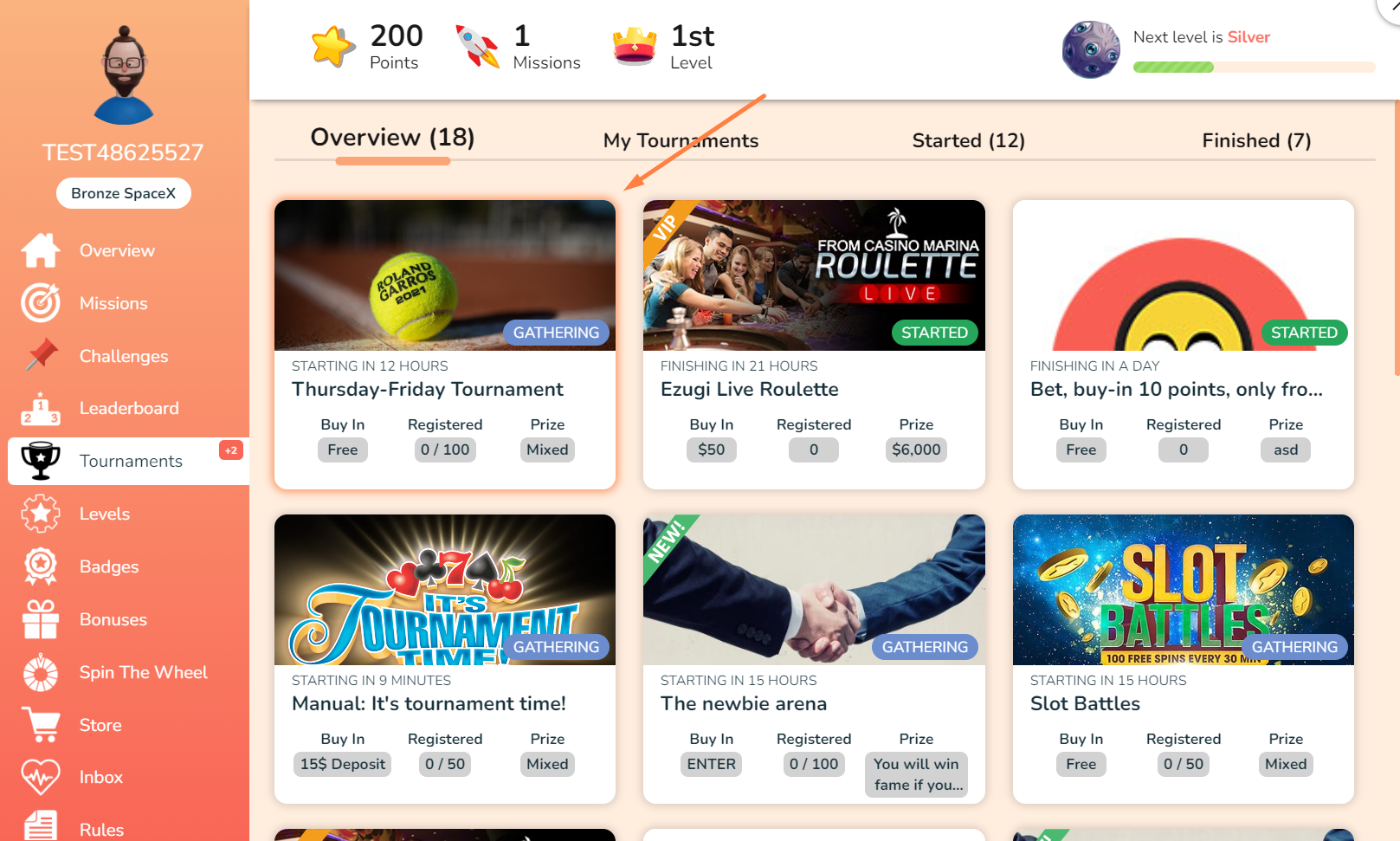 <figure><img src="https://77049817-files.gitbook.io/~/files/v0/b/gitbook-x-prod.appspot.com/o/spaces%2FfS5hl0PiysHtKAKMsQTe%2Fuploads%2Fgit-blob-17d83e59b0cdf7e7a181599825d797eba4681669%2FScreenshot_79.png?alt=media" alt=""><figcaption><p>Example of Tournament with Priority: 1 in the Gamification Widget</p></figcaption></figure>