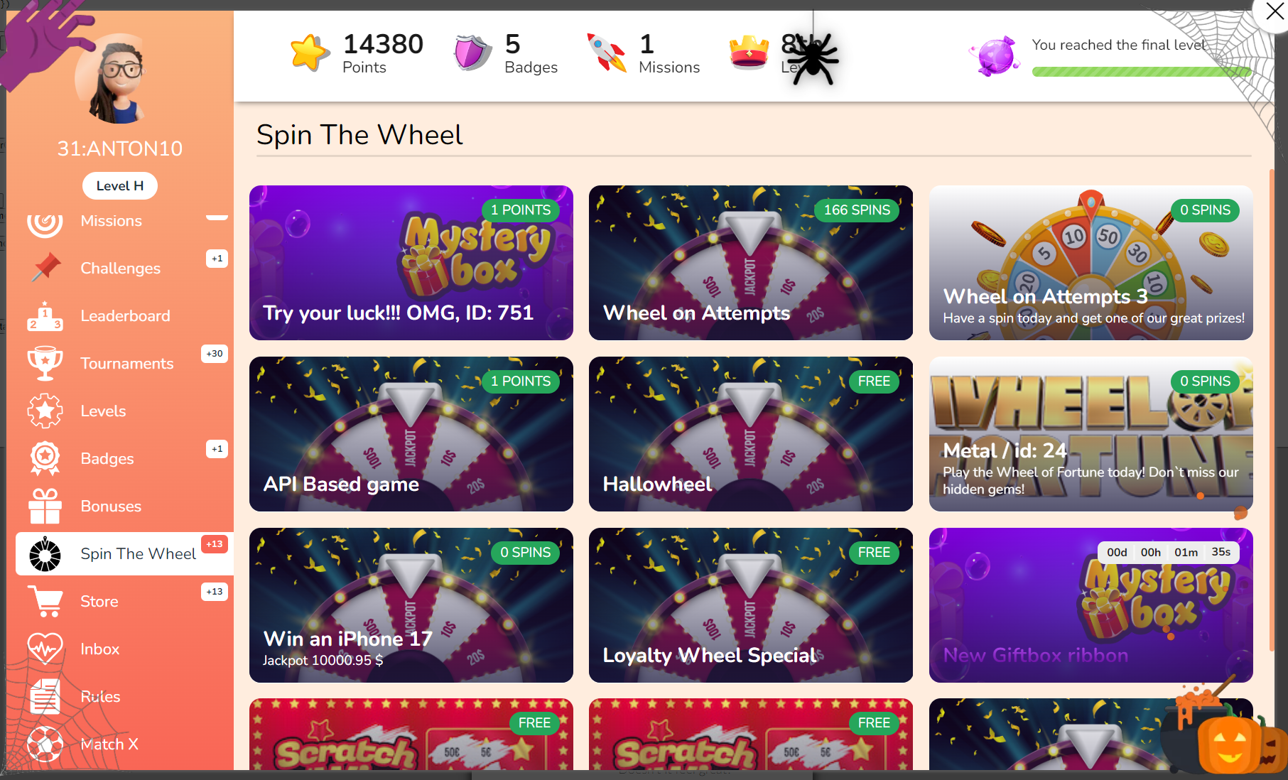 <figure><img src="https://77049817-files.gitbook.io/~/files/v0/b/gitbook-x-prod.appspot.com/o/spaces%2FfS5hl0PiysHtKAKMsQTe%2Fuploads%2Fgit-blob-6206a15e16329b1276189b344bfc3de2b2b28172%2FScreenshot_2.png?alt=media" alt=""><figcaption><p>Example of type: Mini-games in Custom Section</p></figcaption></figure>