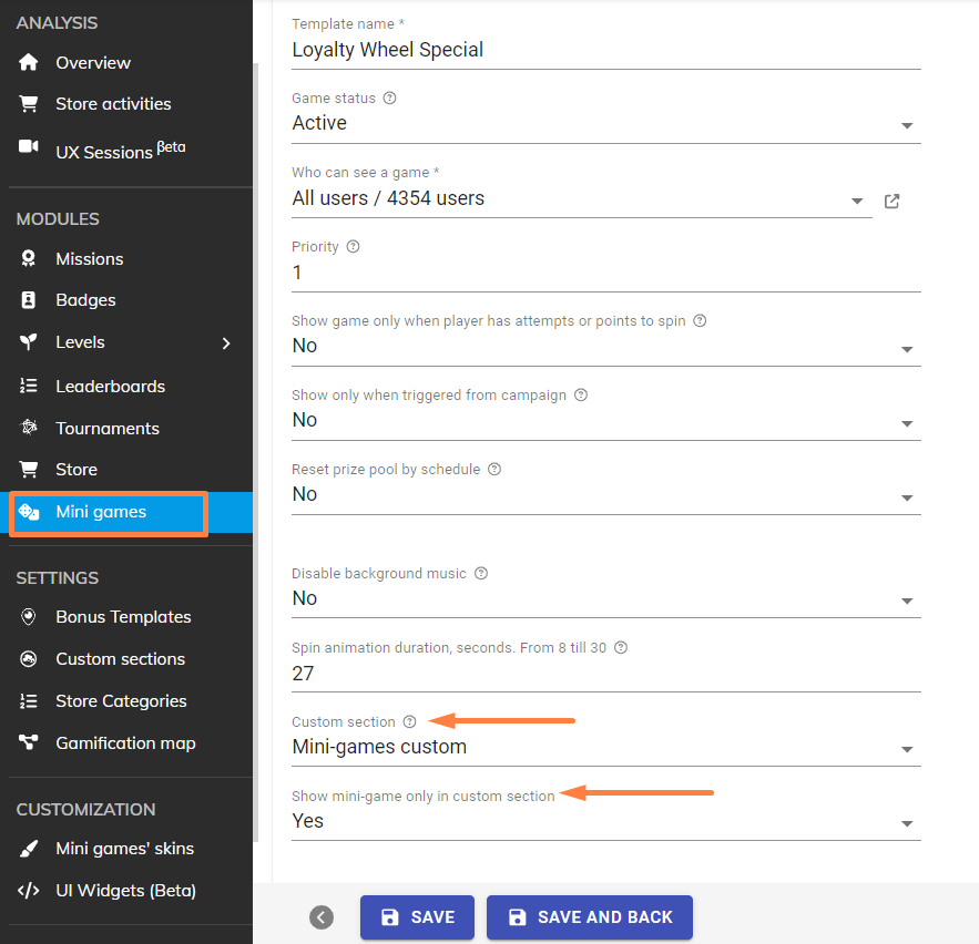 We have added the possibility to create a custom section with mini-games. The option is available in the BO within the Custom Section template, and it is called ‘Mini-games’. Once the page is created, you can add different mini-games by going into the specific game template and adding it to the custom page. You can also choose if the mini-game will be visible only in the Custom Section or in Mini-games.