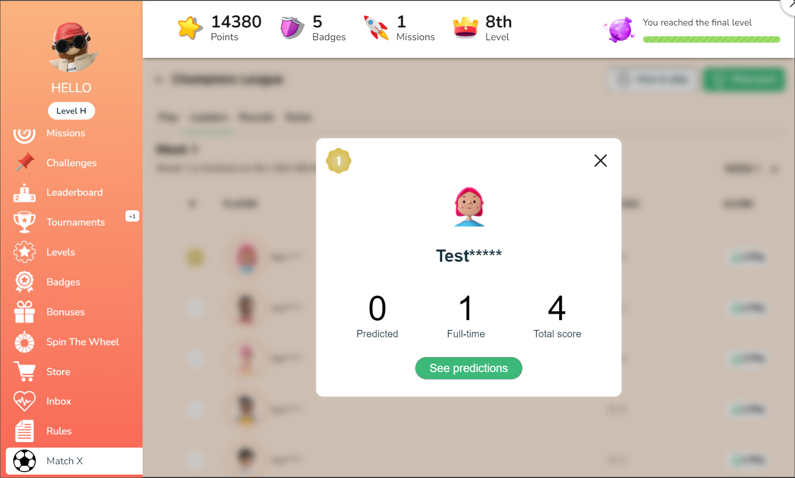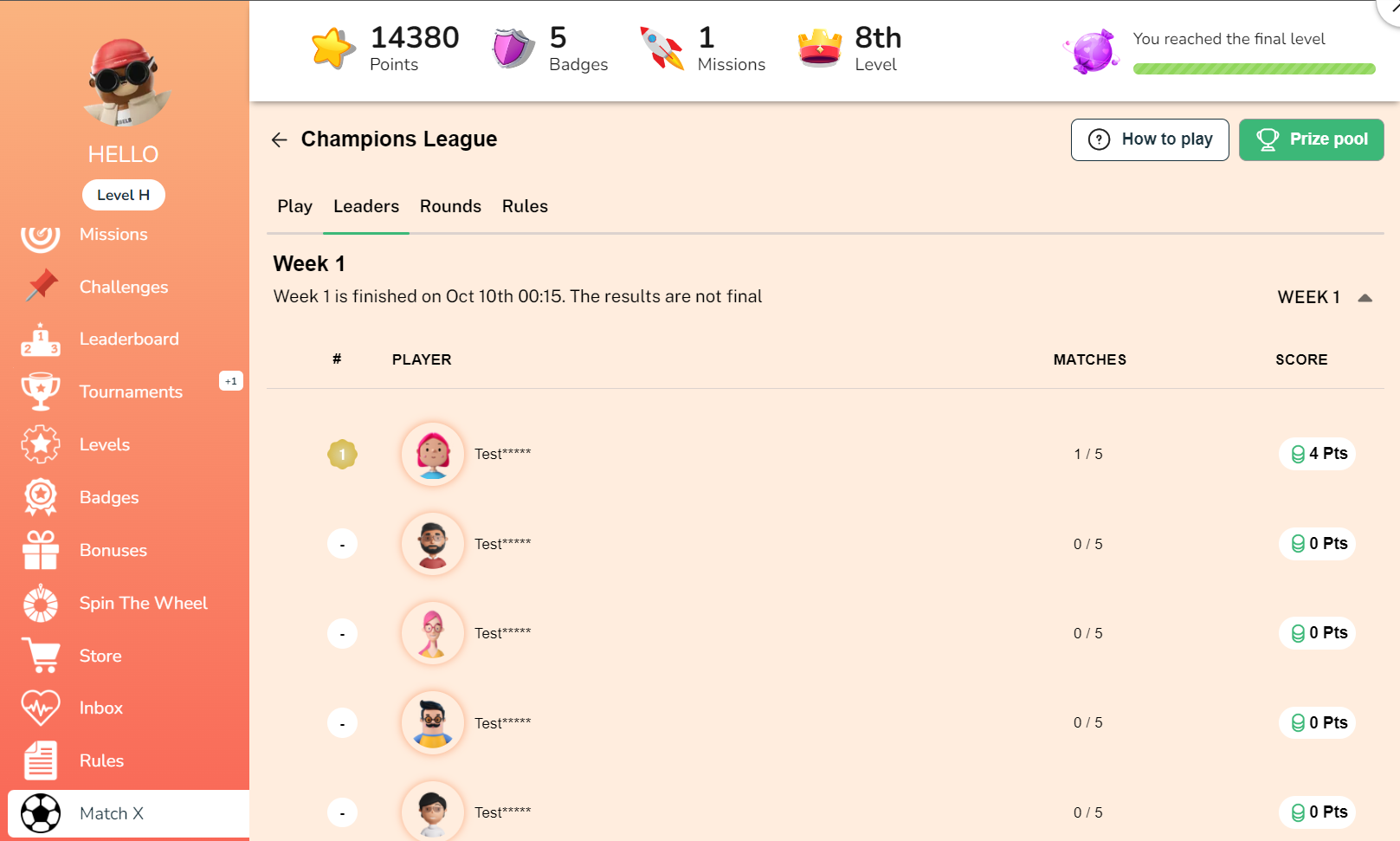 * **New Leaderboards** - The Leaderboards tab provides real-time score updates. The list of ranked players is displayed, and players can click on any participant to access their predictions for the current round (if enabled)