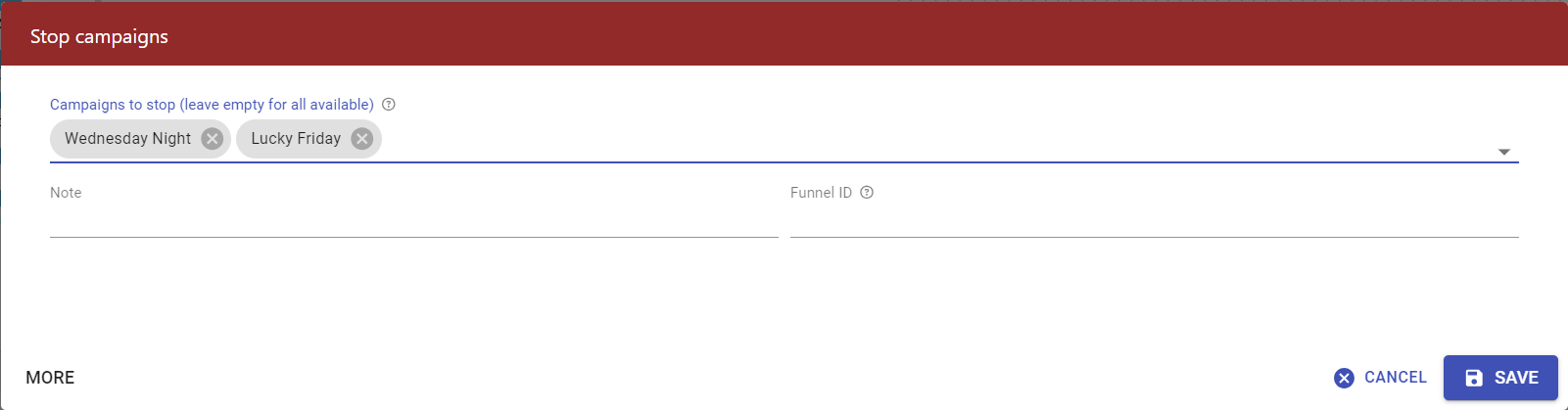 <figure><img src="https://77049817-files.gitbook.io/~/files/v0/b/gitbook-x-prod.appspot.com/o/spaces%2FfS5hl0PiysHtKAKMsQTe%2Fuploads%2Fgit-blob-44ba0fda9eda4e8d9e8006a500eb1a84fa81c980%2FStopCamp1.png?alt=media" alt=""><figcaption><p>To stop only 2 specific campaigns</p></figcaption></figure>