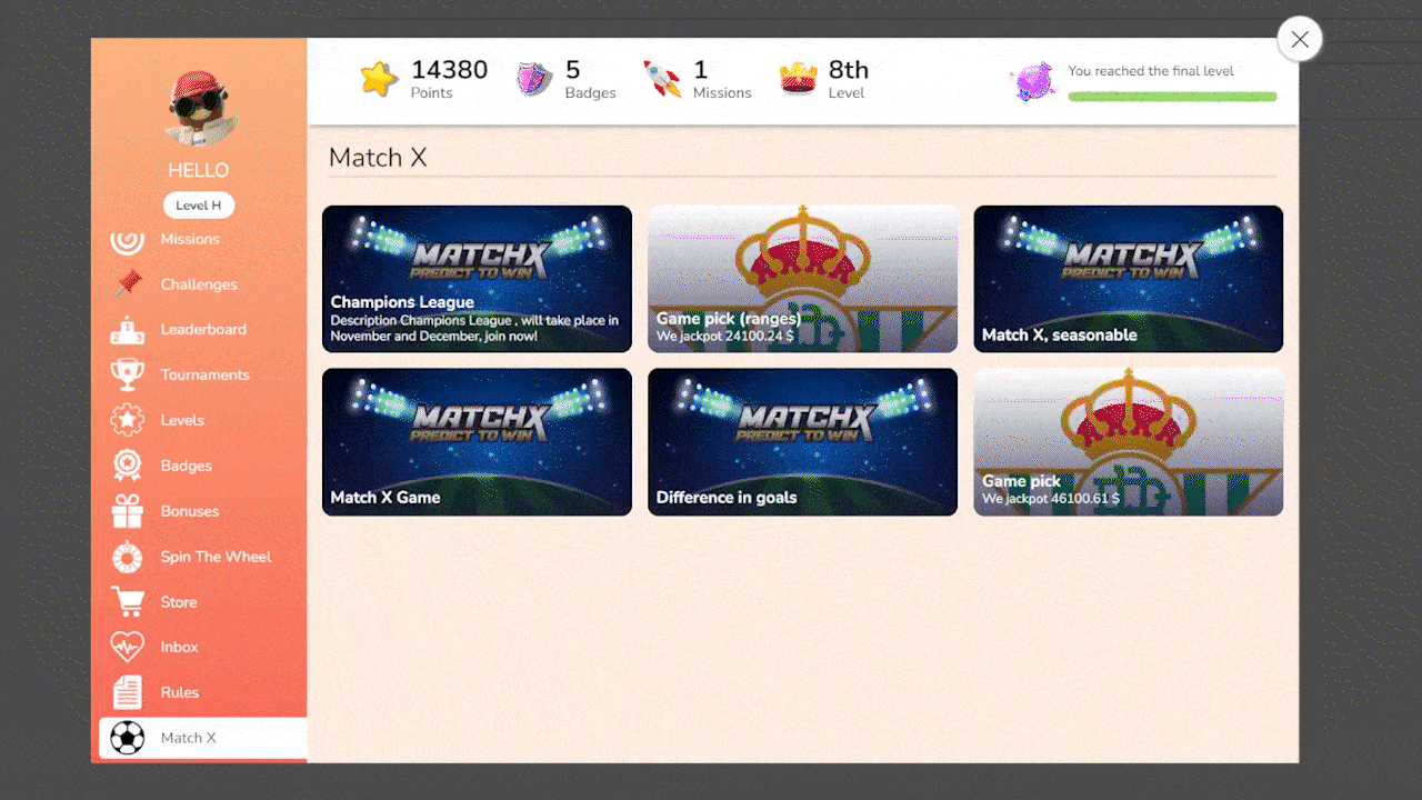 We are releasing a new lobby for the Mini-Games and Match X sections. All games are displayed in the lobby and the players can choose which one to play. If only 1 game is available, the user will be transferred directly to the game and the lobby will not be displayed. Once the players enter a game there is a ‘Back’ button, which redirects them back to the lobby page.