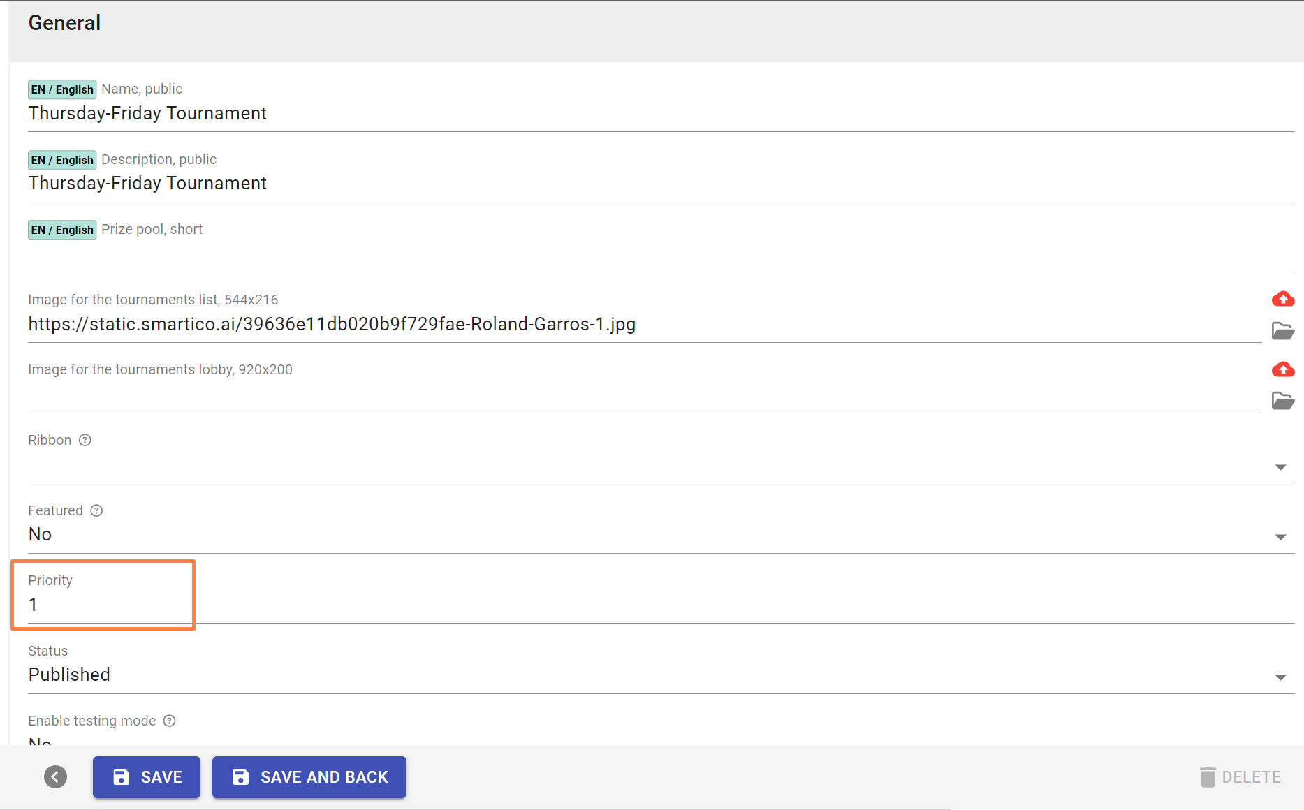 Now you can add Priority to Tournaments, for example, if you want a specific tournament to be displayed first in the Gamification Widget, it is possible. There is a new option in the BO within the tournaments template called ‘Priority’ from where you can configure it.