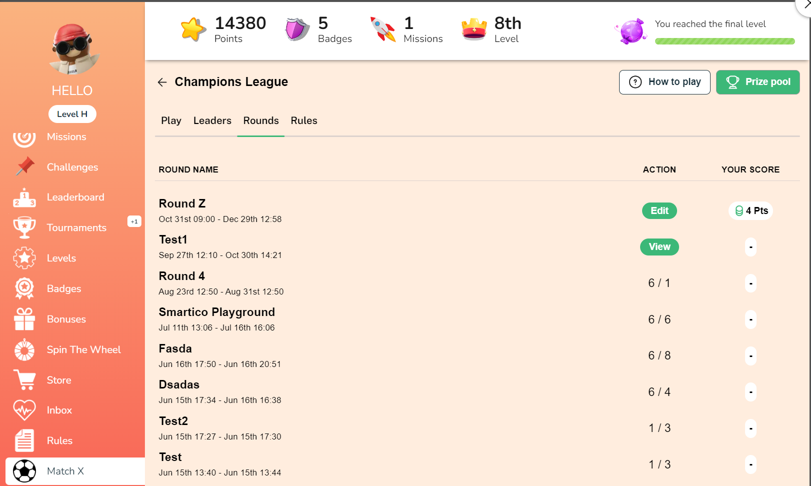* **New Rounds** tab - By clicking on the round name, they can navigate to the desired round. Additionally, points earned in each round are displayed, allowing every player to track their scores.