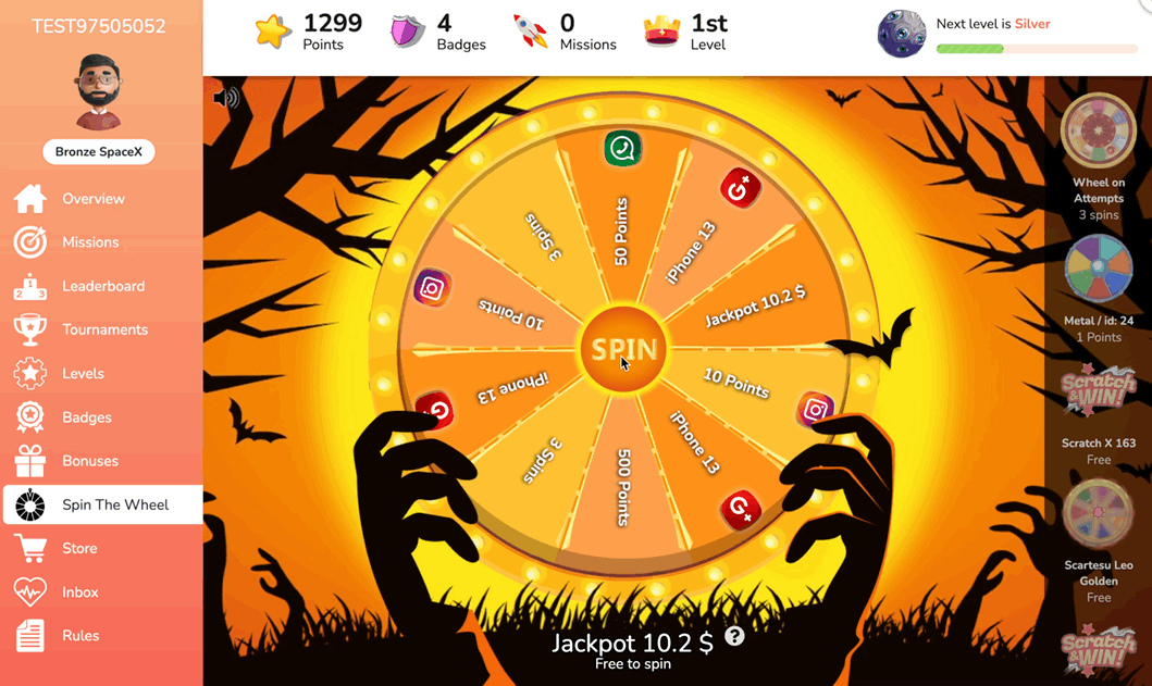 <figure><img src="https://77049817-files.gitbook.io/~/files/v0/b/gitbook-x-prod.appspot.com/o/spaces%2FfS5hl0PiysHtKAKMsQTe%2Fuploads%2Fgit-blob-7831ccaa92d6411dae076a04ace7a95e47c06156%2Fscreencast%202022-09-29%2015-26-08.gif?alt=media" alt=""><figcaption><p>Jackput amount is increased after spinning the wheel</p></figcaption></figure>