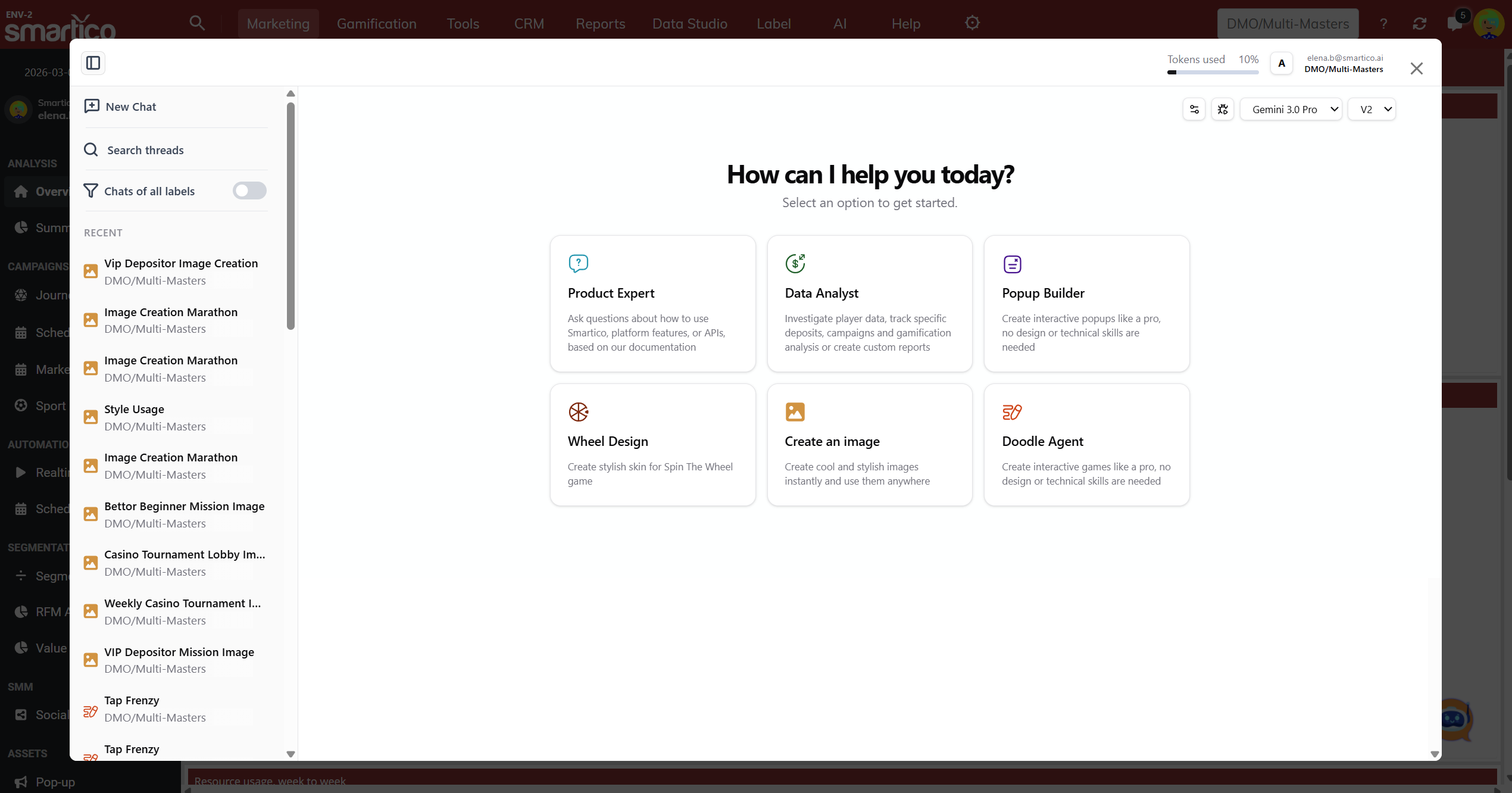 5. [**Doodle Game Creator**](https://help.smartico.ai/welcome/products/ai-agents/ai-agent-doodle-game-creator) - creates and customizes promo games for use in Campaign pop-ups.
