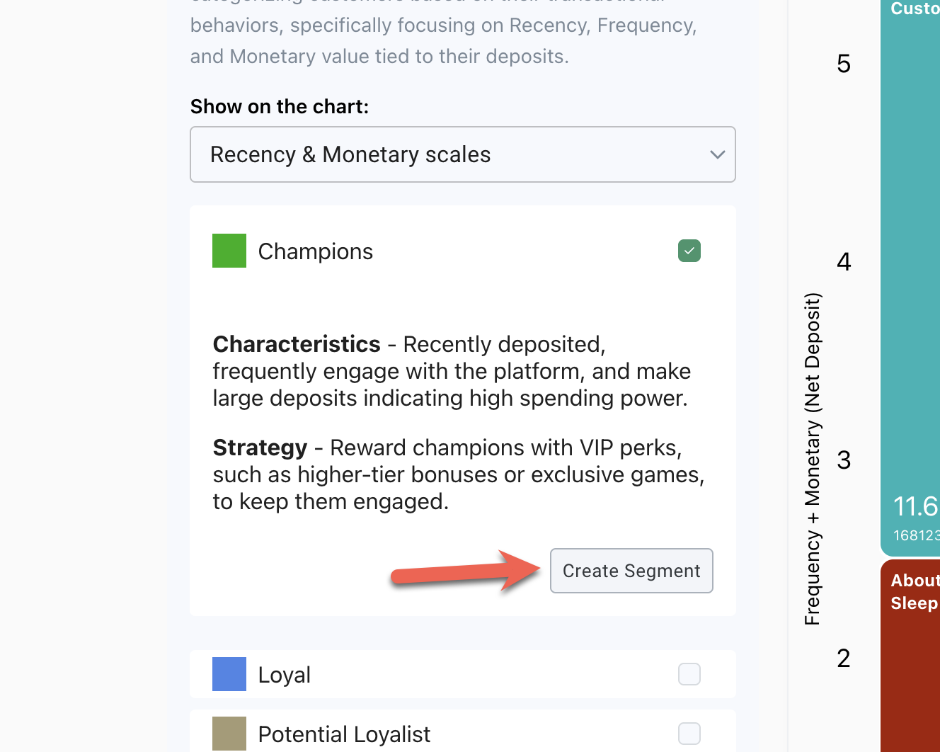 RFM (Recency, Frequency, Monetary) Segmentation is a feature designed to help operators analyse and understand player behaviour.