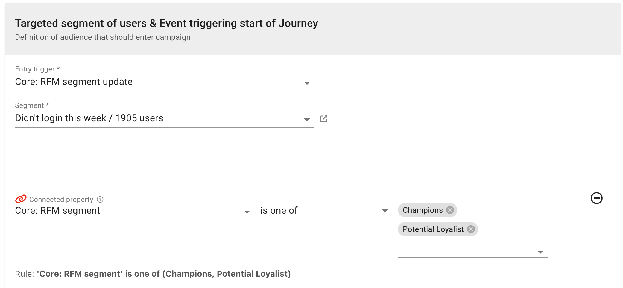 <figure><img src="https://77049817-files.gitbook.io/~/files/v0/b/gitbook-x-prod.appspot.com/o/spaces%2FfS5hl0PiysHtKAKMsQTe%2Fuploads%2Fgit-blob-87cbe40c861ee7c1d8b648b10f09fe11370ac1cf%2Fimage.png?alt=media" alt=""><figcaption><p>BO: Use of RFM segment in Campaing builder</p></figcaption></figure>