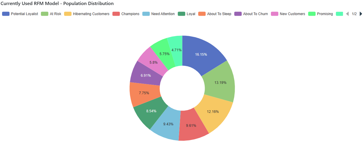 * **Graphical Representation:** The "Currently Used RFM Model - Population Distribution" chart provides an intuitive visualization of player segments