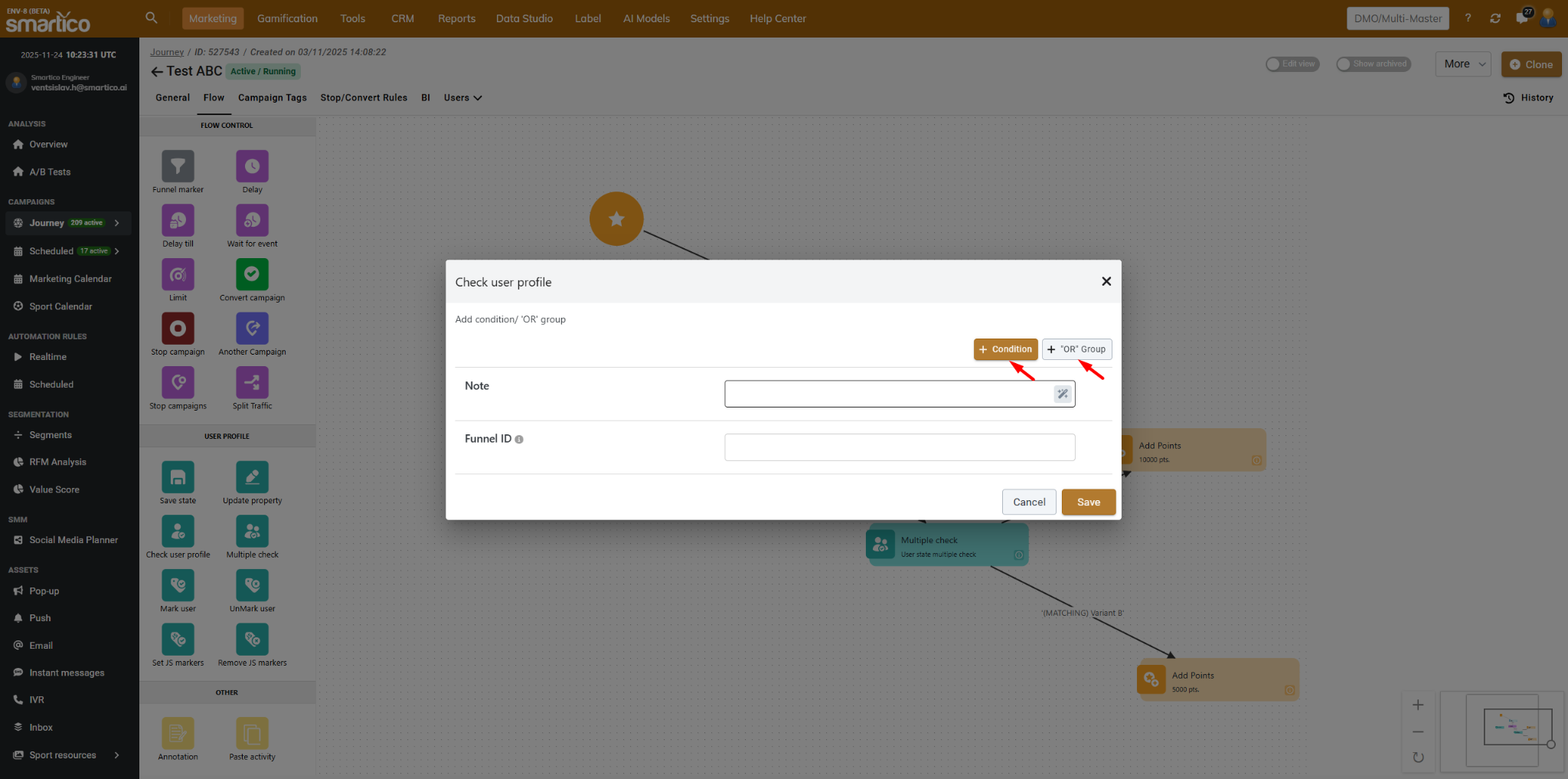 The operator can add one or more Conditions and “OR” Groups:
