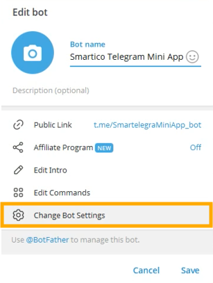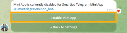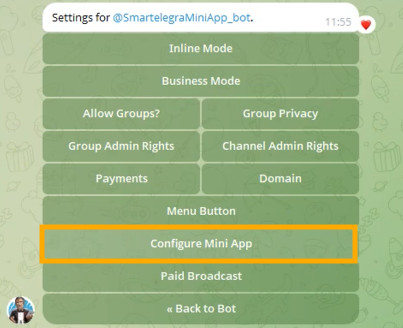 These optional steps let you activate the Mini App feature, allowing your bot to open a link directly inside Telegram’s Mini App instead of a standard web browser.