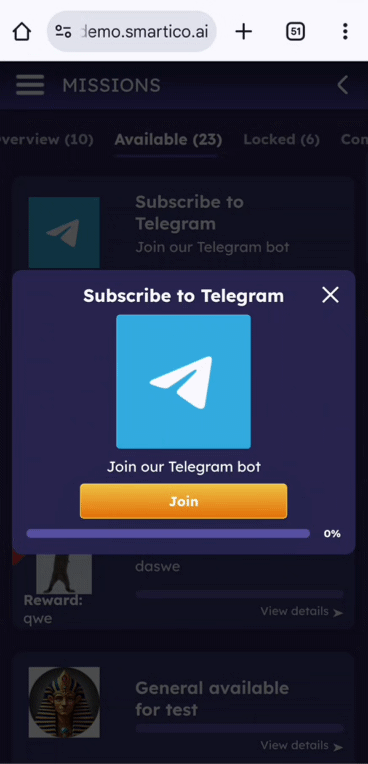 3. Invite users to the Telegram bot so their Telegram profile is linked to their Smartico profile.