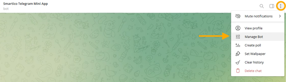 2. Tap the **three-dot menu** (top right corner) and select **Manage Bot**