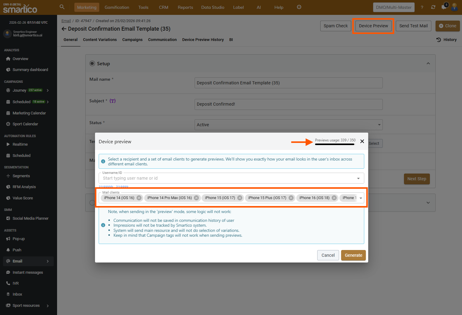 **Usage Limits**: Each email generated for a specific device counts as 1 preview. To let you test-drive this feature, every label includes a complimentary trial package of **30 free previews per month**.