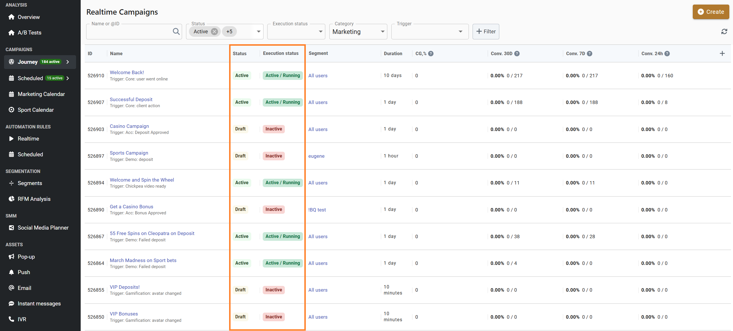 <figure><img src="https://77049817-files.gitbook.io/~/files/v0/b/gitbook-x-prod.appspot.com/o/spaces%2FfS5hl0PiysHtKAKMsQTe%2Fuploads%2Fgit-blob-6404c9914194f1e60e27d5168291a901d40ab5e4%2FScreenshot_34.png?alt=media" alt=""><figcaption><p>BO: Status and Execution sttus in Campaigns grid</p></figcaption></figure>