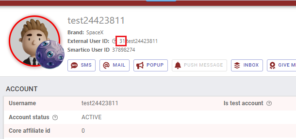 ***core\_sm\_brand\_id -*****&#x20;is** the brand ID for the brand of which the given user belongs. You can find this number in the user profile, the number standing before the user's external ID. In the example case is 31.
