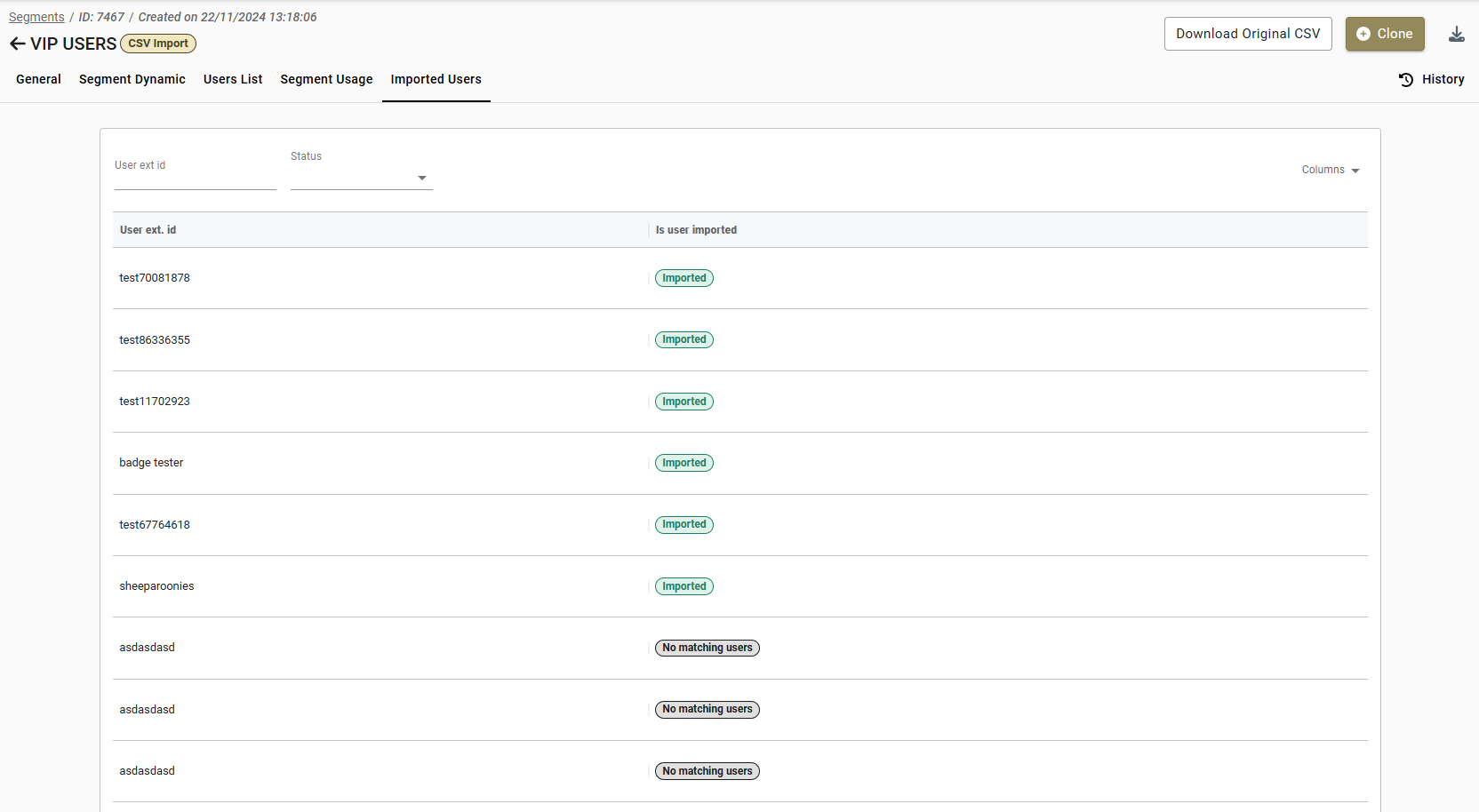 <figure><img src="https://77049817-files.gitbook.io/~/files/v0/b/gitbook-x-prod.appspot.com/o/spaces%2FfS5hl0PiysHtKAKMsQTe%2Fuploads%2Fgit-blob-84fae43fb88e39c4437e7146a2009178408123a5%2FScreenshot_7.png?alt=media" alt=""><figcaption><p>BO: Importing CSV segment with User markers</p></figcaption></figure>