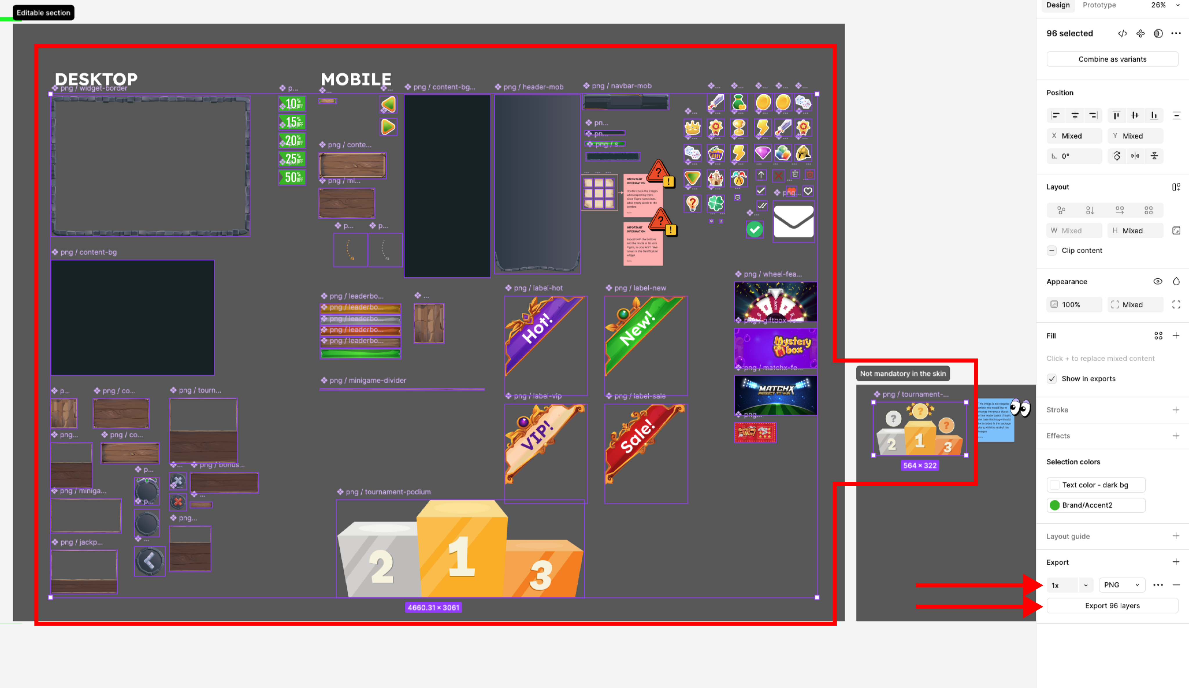 4. Click Export layers and save the images - all the components selected, setting them to 1x PNG, and then clicking on the “Export“ button