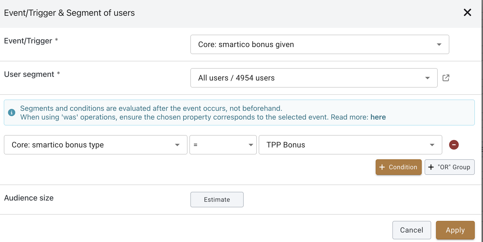 * **Condition:** `Core: Smartico Bonus Type = TPP Bonus`<br>