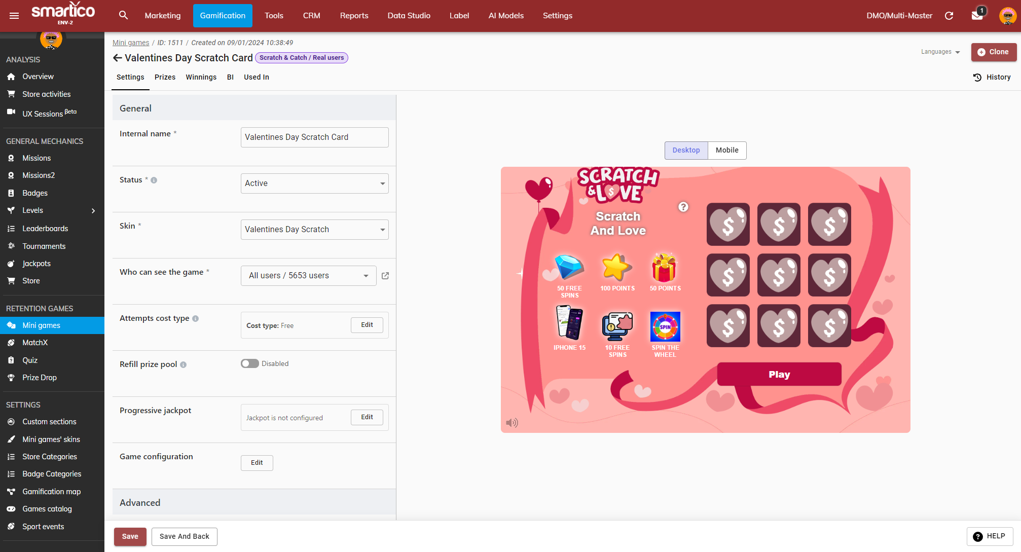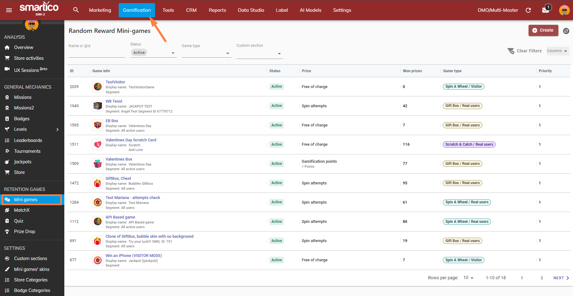 Configurations of the mini-games are available in the “Gamification > Mini-games” section