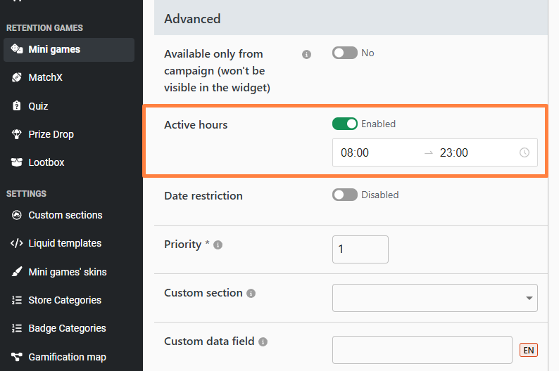 <figure><img src="https://77049817-files.gitbook.io/~/files/v0/b/gitbook-x-prod.appspot.com/o/spaces%2FfS5hl0PiysHtKAKMsQTe%2Fuploads%2Fgit-blob-fee1e8ce20d089abba5d733aba2f6813a4913843%2FScreenshot_10.png?alt=media" alt=""><figcaption><p>BO: Active hours setting in Mini-games</p></figcaption></figure>