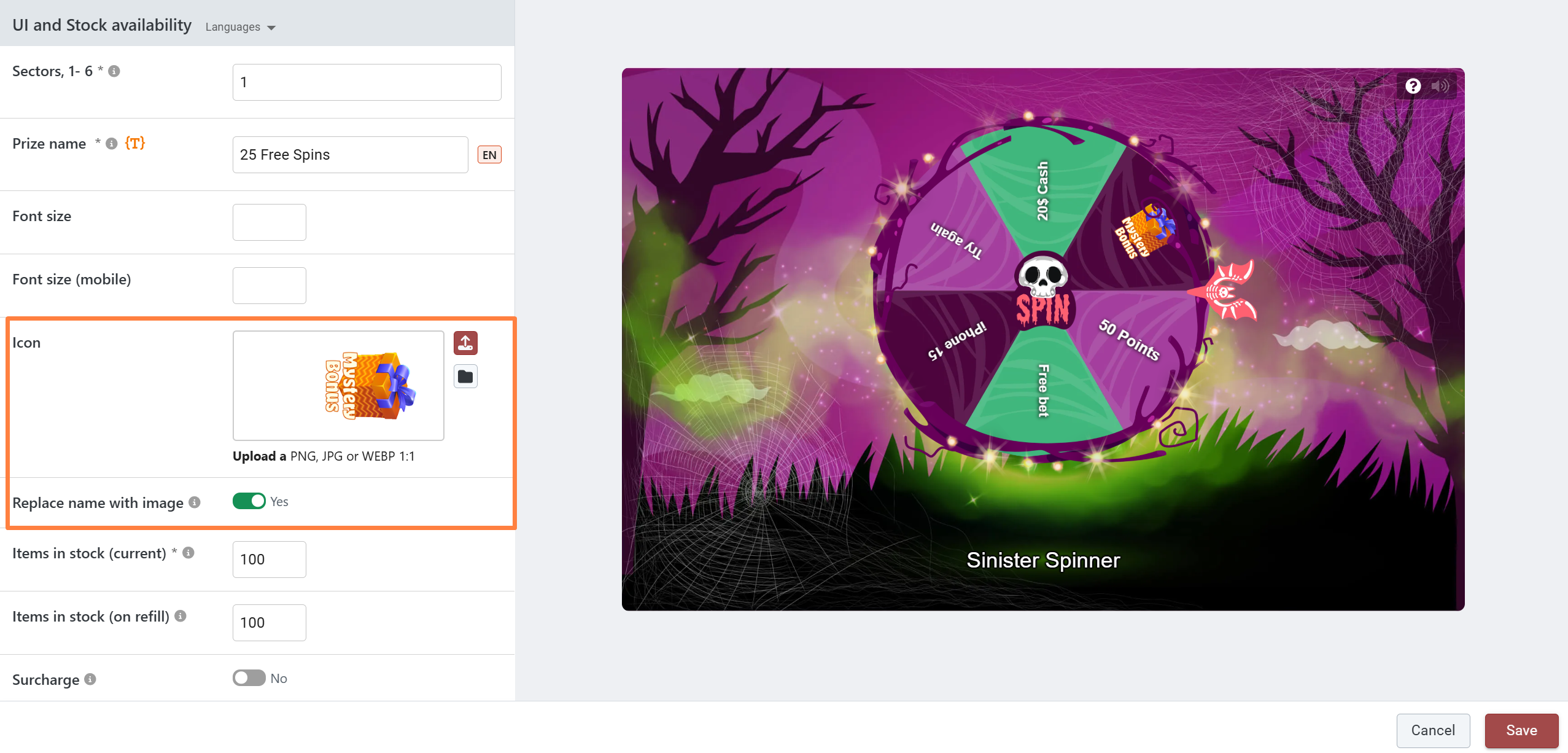 # Using images instead of prize names in Spin the Wheel