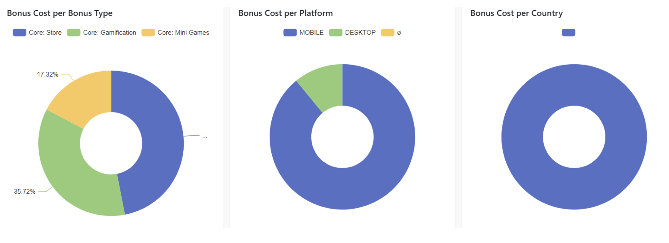 * Bonus Cost per Platform (Pie Chart) – compares bonus spend across desktop, mobile, and other platforms.