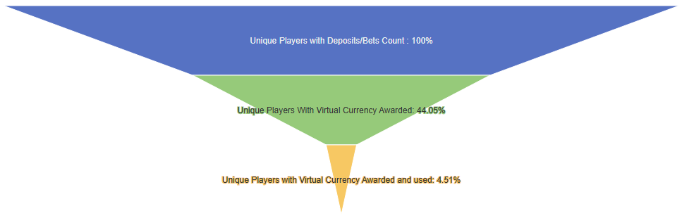 Unique Players with Virtual Currency Awarded and used - number of unique players that were granted the Virtual Currency and also used it by spending it. The assumption, made for the sake of the analysis is that this is the population that is fully aware of the Virtual Currency feature.