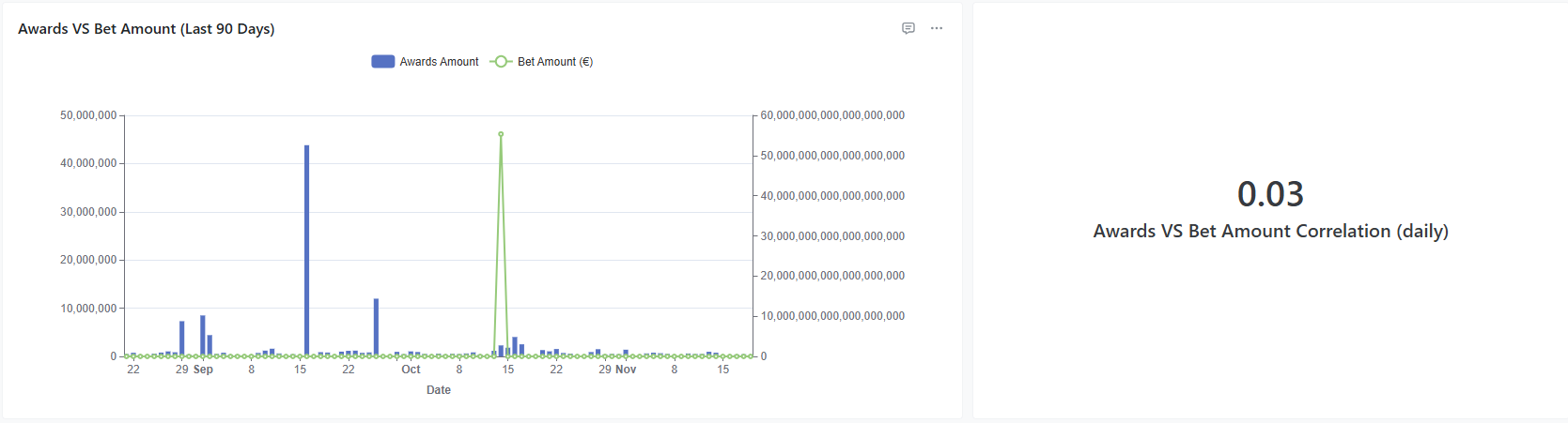 In case of positive correlation, the increase in Rewards causes increase in Player Betting activity. This is a healthy feature adoption for the Business. In case of negative correlation, the increase in Rewards causes decrease in Player Betting activity. In such case the rewarding behaviour needs to be optimized and the players need to be made aware of the feature and its' advantages.