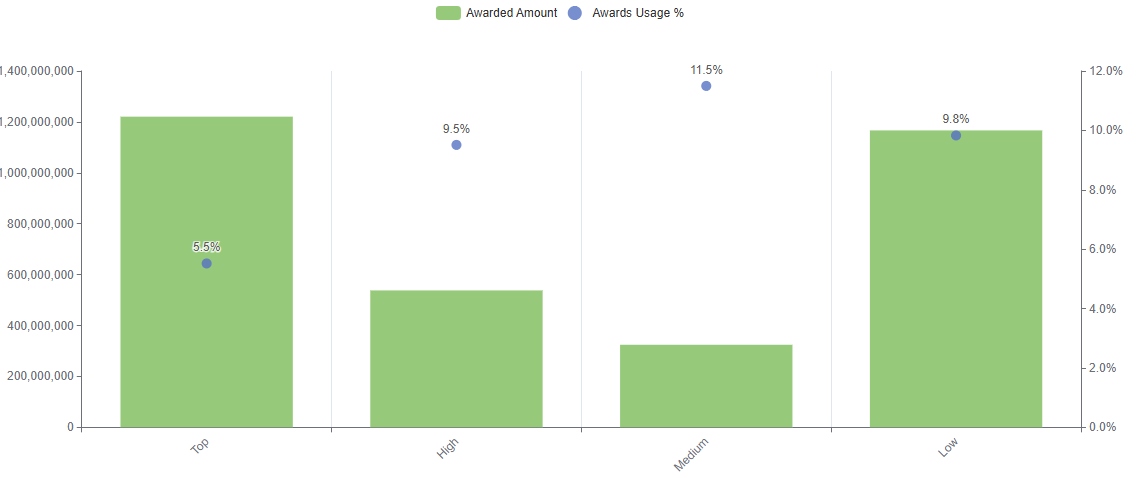 Value to You: It provides vital oversight for budget planning by identifying the top 10 cost drivers for your VC program. Tracking the Average Value per Item ensures that the intended value of rewards is consistent and helps control overall inflation.