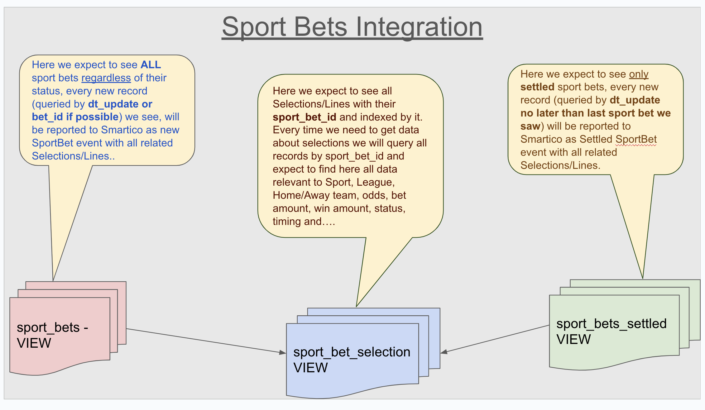 Transactional views that represent deposits, casino/sports bets, etc., are "transactional", which means that every record in the view should be immutable and should have an indexed "dt\_finalized" column.