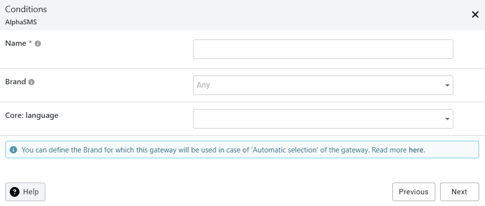 2. **Brand** - you can set the gateway to apply to a specific brand or to any brand. If two gateways are valid for a brand (one specific and one generic), the system will prioritize the specific one. If multiple gateways exist for the same brand, selection is based on ID.